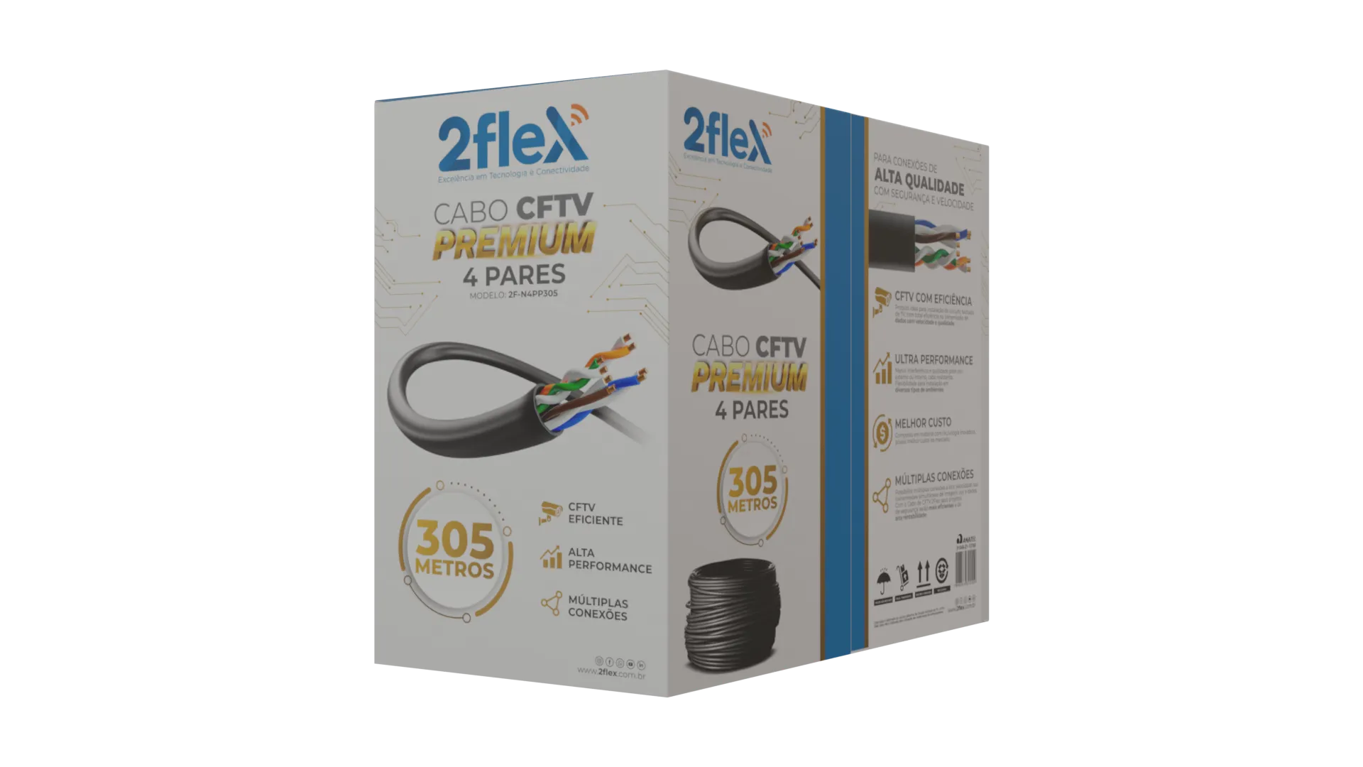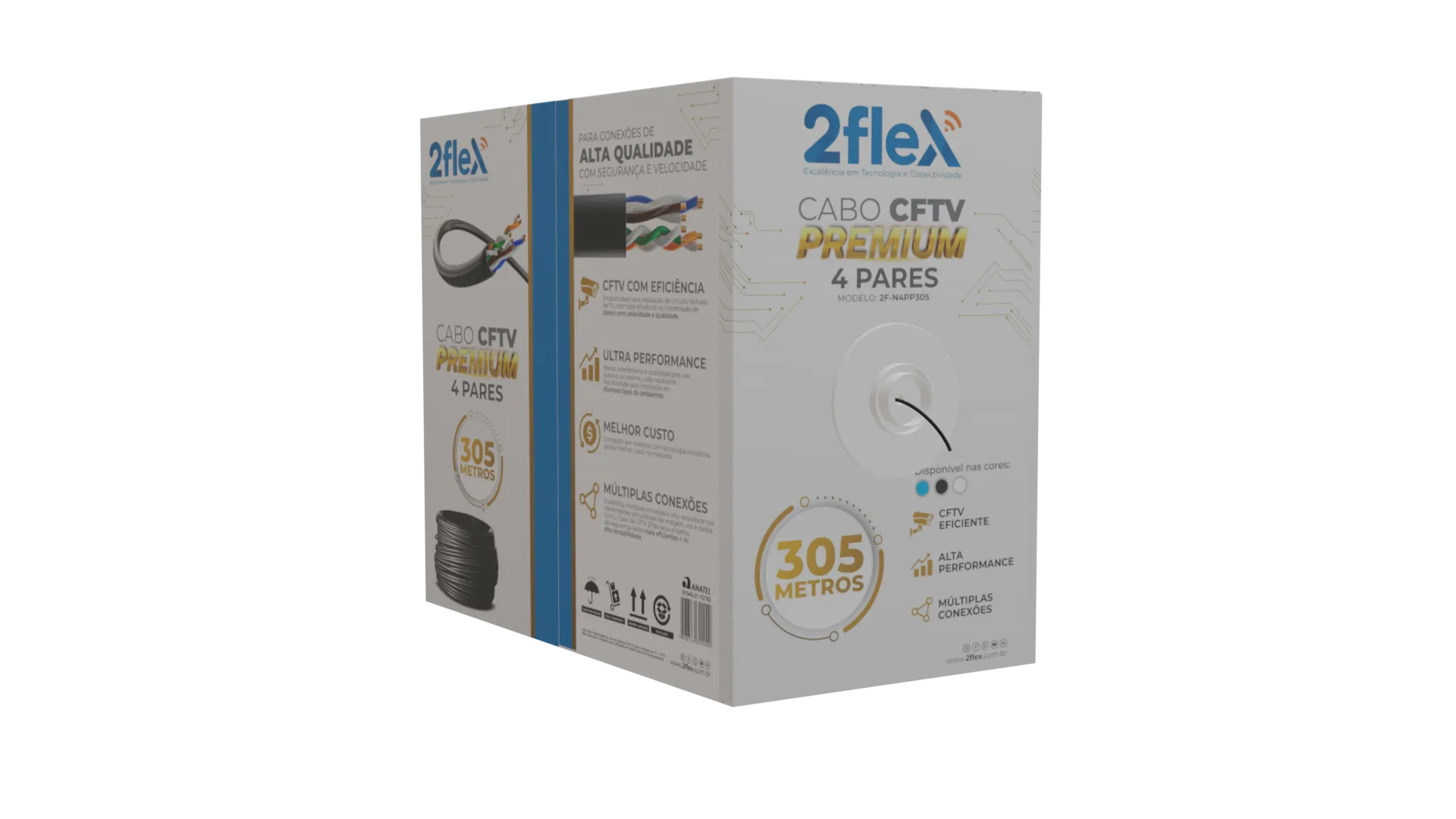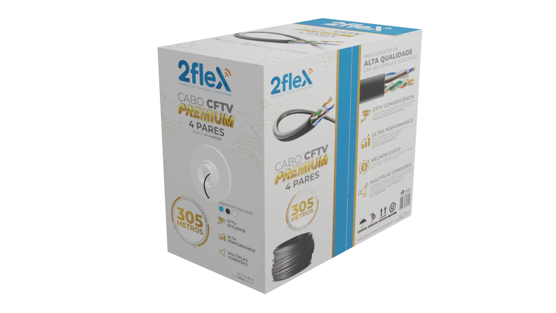 Cabo premium para CFTV com 305 metros, ideal para instalações seguras e sem perda de sinal. Perfeito para sistemas de monitoramento residencial e comercial.
